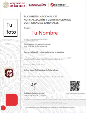 - Esta certificación tiene como base el estándar de competencia EC0537 - Comercialización Internacional de Productos, el cual está inscrito en el Registro Nacional de Estándares de Competencia (RENEC).